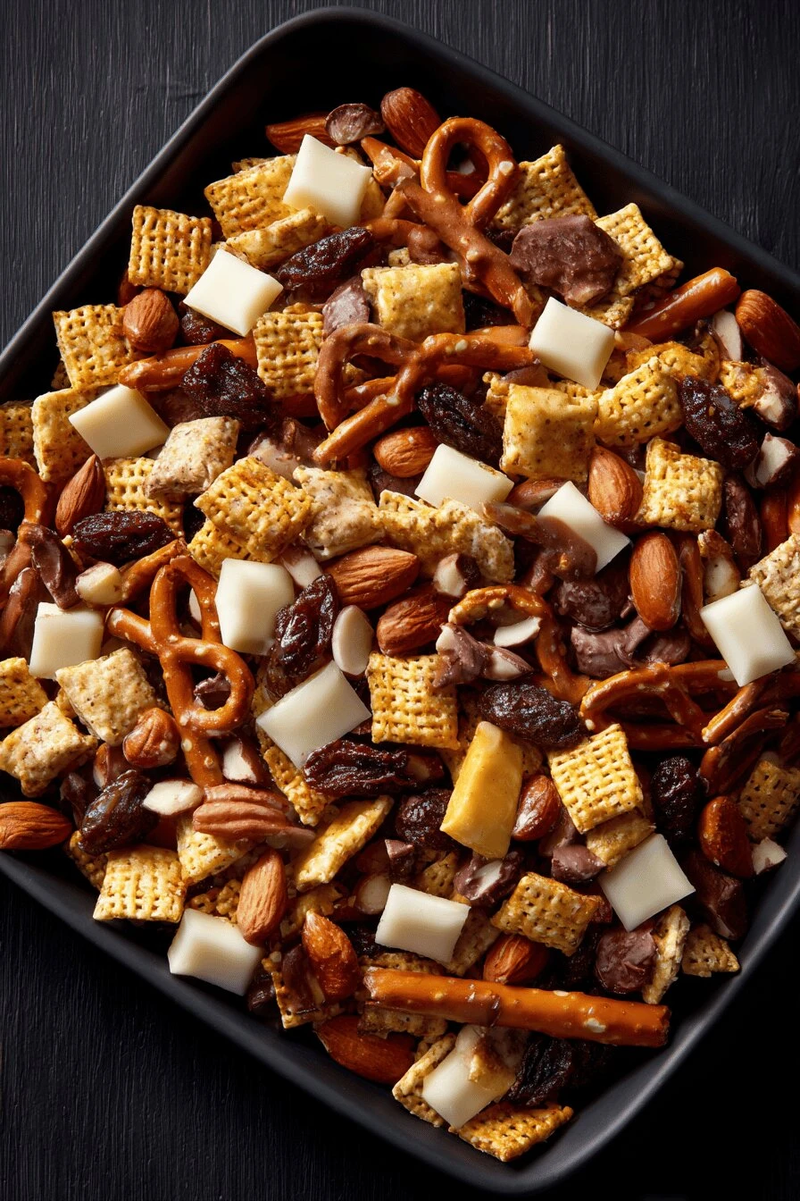 Pretzel sticks. Around twenty pieces. Not pretzel rods. Not pretzel nuggets. The thin sticks. They’re what makes this salty and snappy.