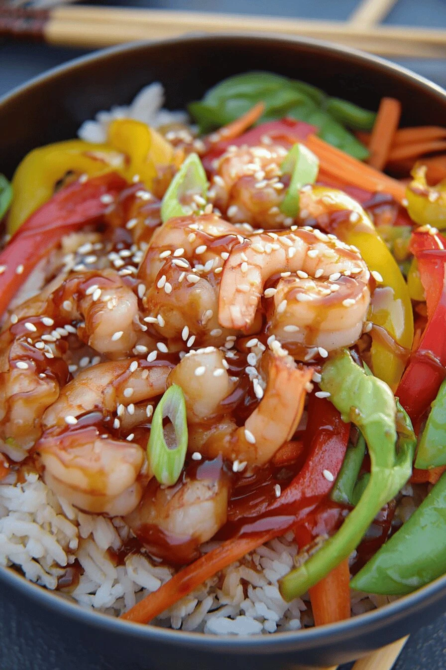 Comes together in 38 minutes total. Actual speed — not fussed-up timing. One pot. One wok, technically, but if you don’t have one a big skillet does the job fine. Cleanup is what it is. The shrimp cooks fast enough that you don’t lose the snap in the vegetables. They stay actually crispy, not just warm and limp like some stir fry dishes. Asian flavors without feeling complicated. Sesame oil, teriyaki, rice vinegar — they’re all working together and you’re not managing three different sauces. Reheats better than expected. Cold the next day it’s still good. Maybe better.
