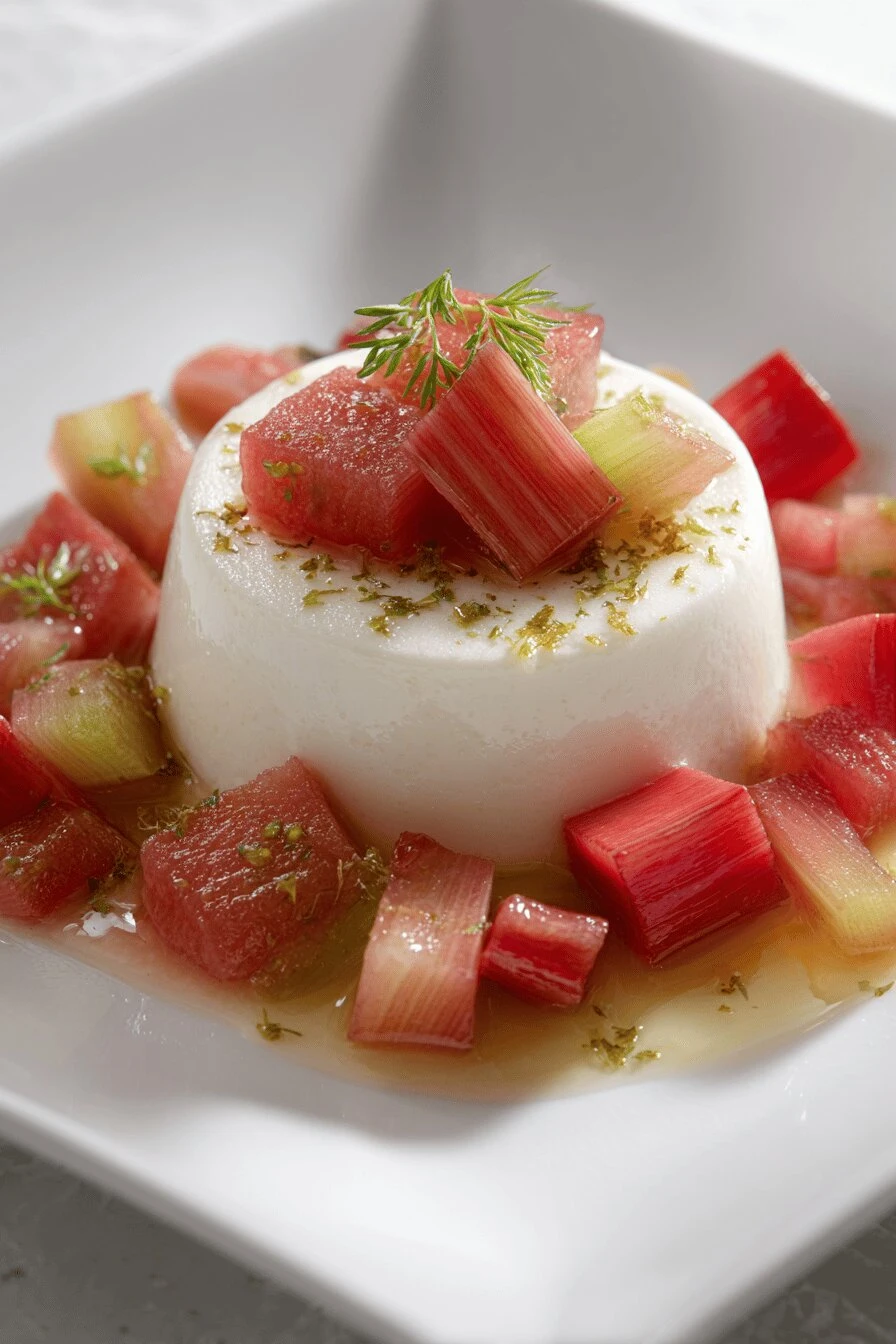 No bake. Literally just cream, heat, and time. The rhubarb compote is tart enough that you don’t need to pile on sugar everywhere—contrast matters more than sweetness here. Tastes like something a restaurant would charge $14 for. Takes maybe 36 minutes of your actual attention, rest is just chilling. Cold straight from the fridge, it’s wobbles a little when you move the plate. Texture thing. Hard to explain until you eat it.