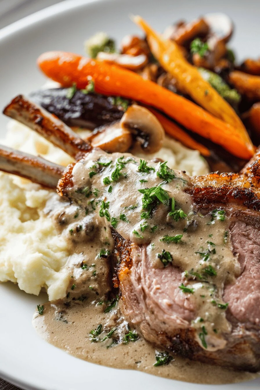 Set the veal rack on the counter 30 minutes before you start. Room temperature matters here — it cooks way more evenly than cold meat straight from the fridge. The porcini and chanterelle mushrooms go into boiling water first. That’s the whole trick to the sauce. Everything else is just building on top of that umami base.