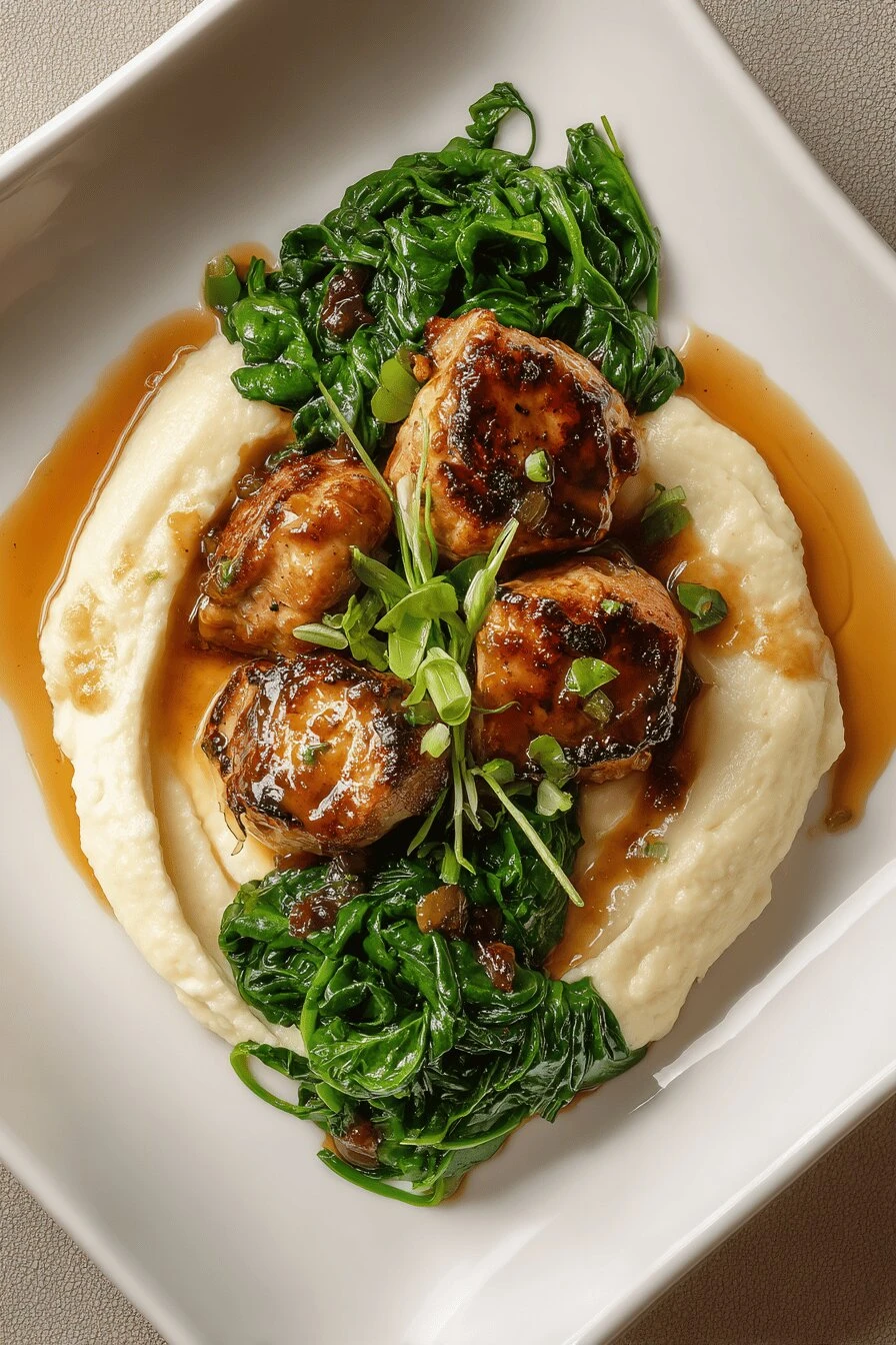 Plate immediately. The sauce should be glossy and actually coat the meat, not pool underneath it. Serve with something green—sautéed spinach, wilted arugula, whatever. The richness needs that cut. Celery root purée on the side if you want to make it restaurant-style. Not necessary though.