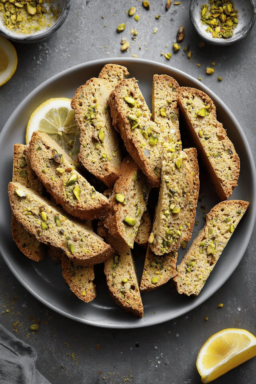 Pistachios get bitter if you toast them hot. Medium heat. That’s it. The lemon zest is the whole thing that makes these not taste like regular biscotti. Don’t skip it. Don’t reduce it. Exactly as written.