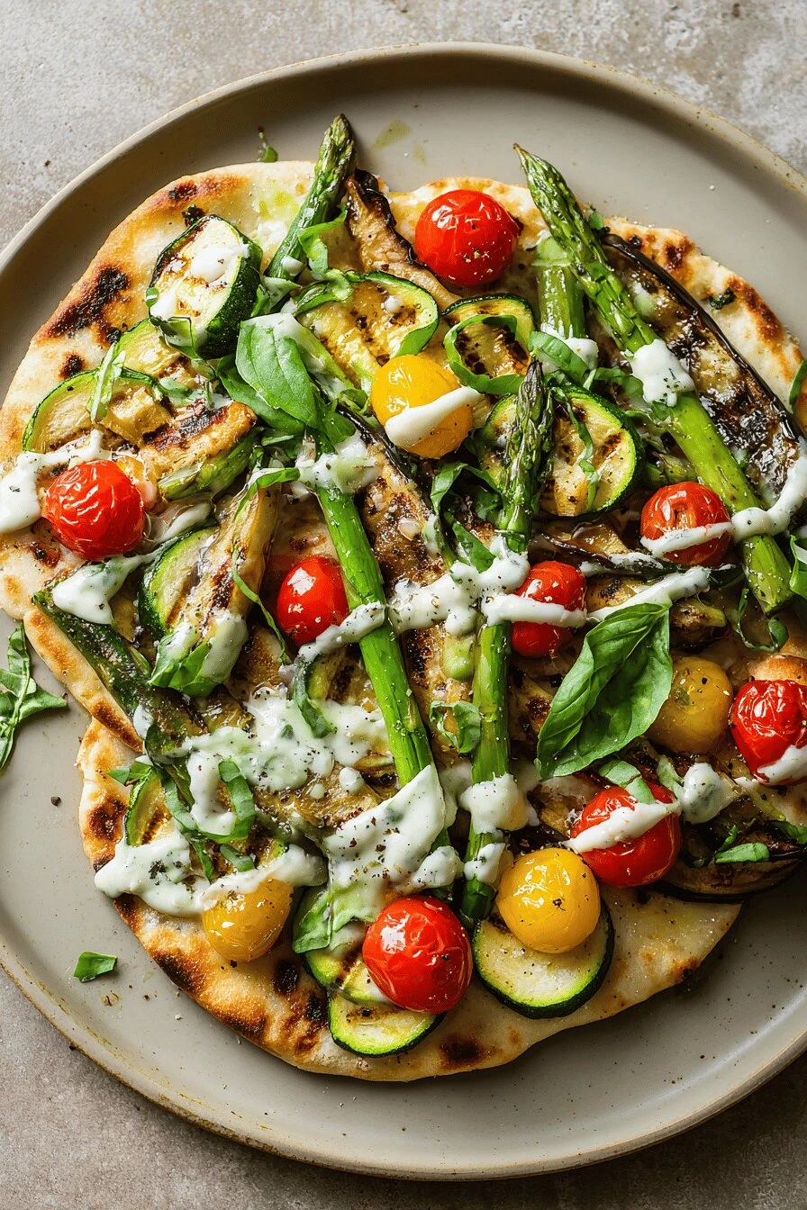 How to Make Grilled Vegetable Flatbread with Lemon Herb Mayo
