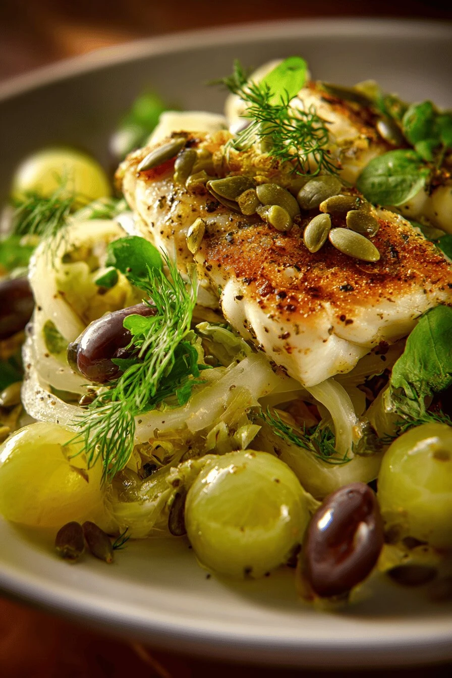 Grapes and fennel together is weird until it isn’t. Sweet fruit next to that licorice bite. Works somehow.