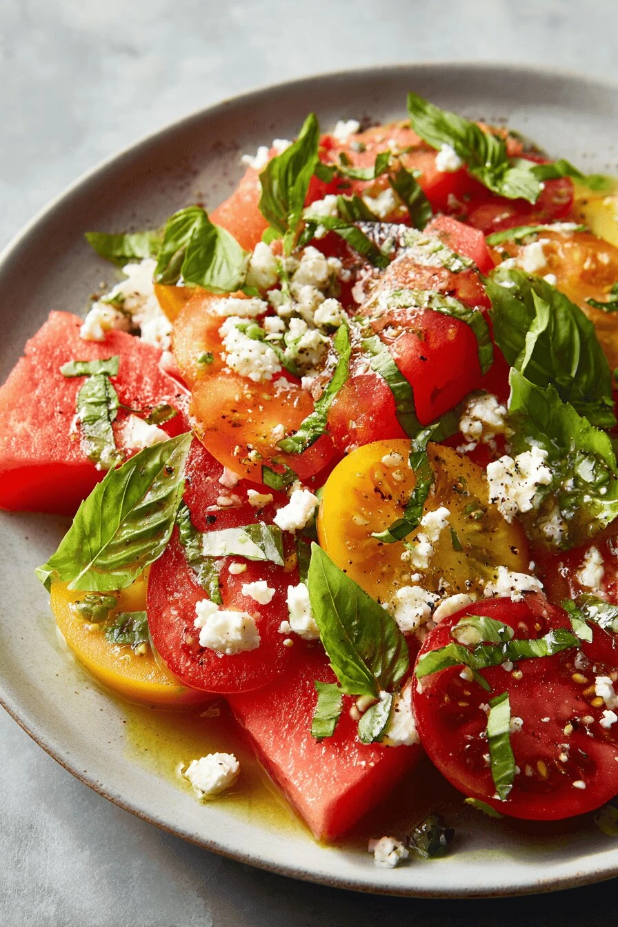 Can I use regular tomatoes instead of heirloom? Sure. They work fine. Heirlooms have more flavor and less juice, which matters here because you’re already dealing with watermelon water. Regular tomatoes add more liquid. It’s not bad, just different.