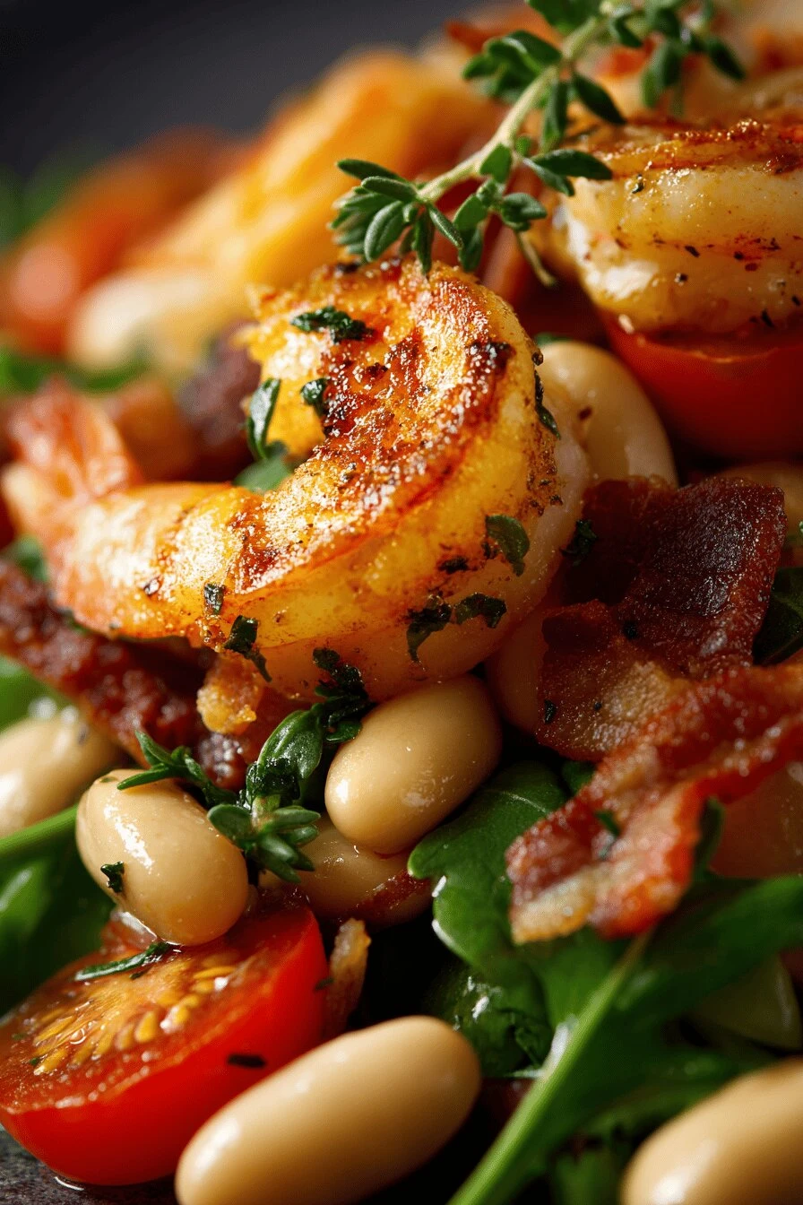 Serve it warm or cold. Hot shrimp on warm beans is one thing. Cold the next day is another thing. Better thing. The vinegar soaks in overnight and the whole salad tastes less like separate ingredients and more like something that sat in your fridge thinking about itself.