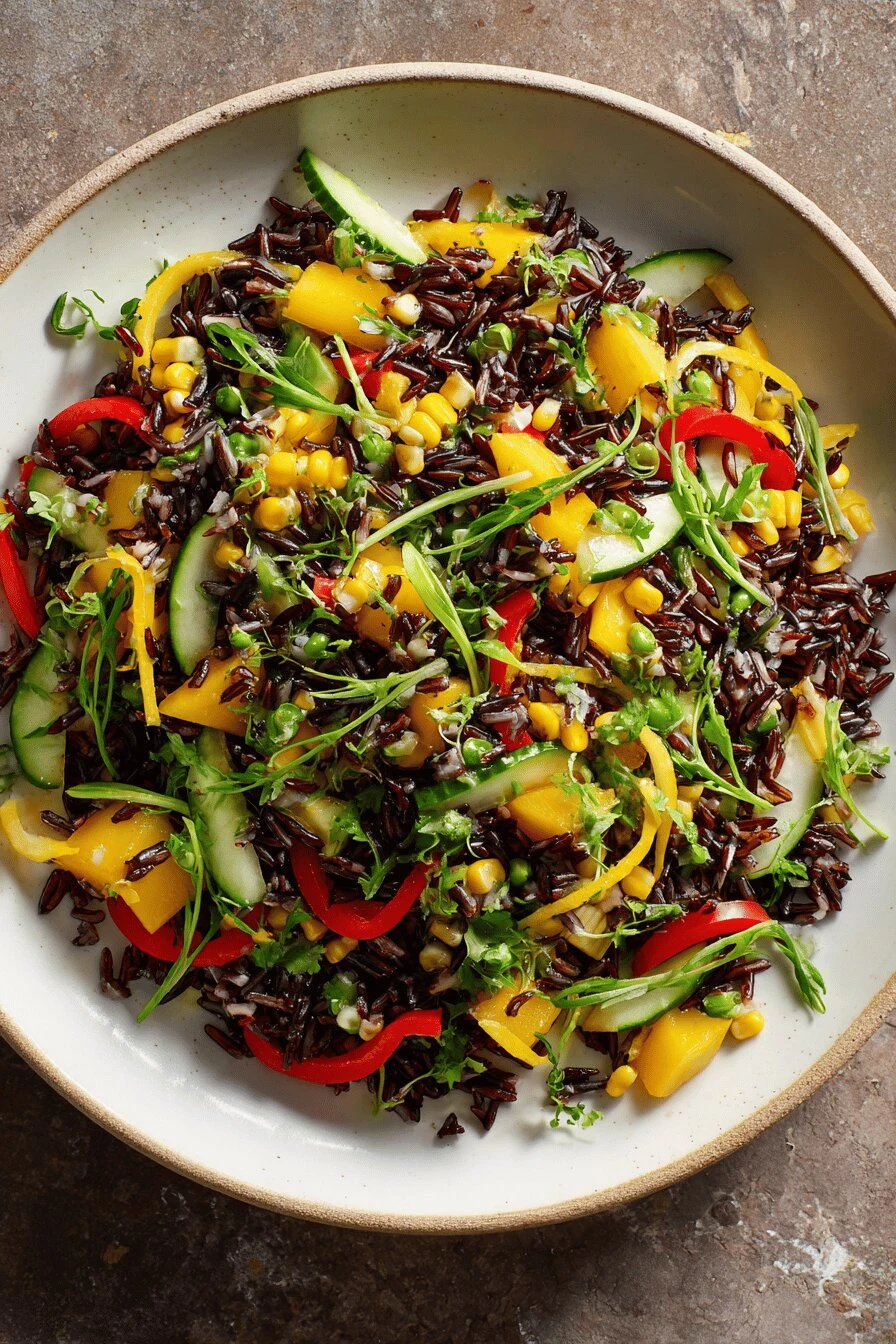 Spread the cooled rice on a plate first—this matters more than you’d think. Wild rice salad with black beans tastes better when everything’s actually cold. Not warm. Not “room temperature.” Cold.