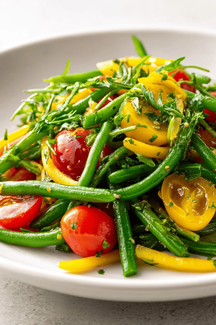 Summer dinner that takes less time than deciding what to eat. Bean and tomato salad that actually tastes like something—not just filler greens. The sherry vinaigrette does the work. Works cold. Works at room temp. Works the next day if you somehow have leftovers. No cooking skills required. Just boil water and whisk. Vegetarian, healthy, and honestly tastes better than salads that pretend to be virtuous.